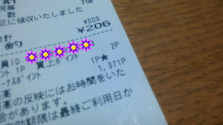 100円で1ポイントだけですが、来店ポイントにボーナスポイントと