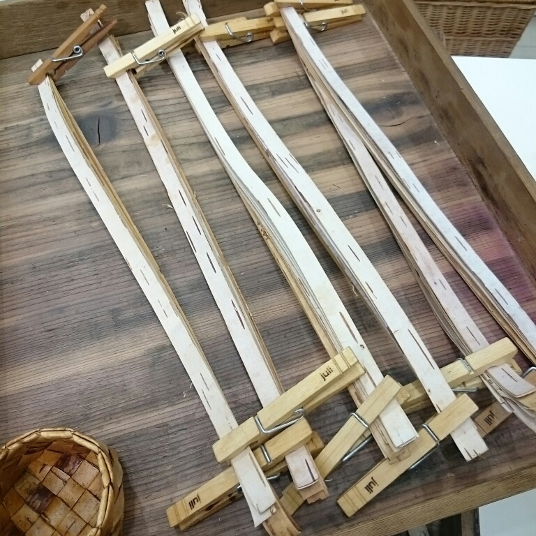 先生の指導の下、白樺を編み編み。