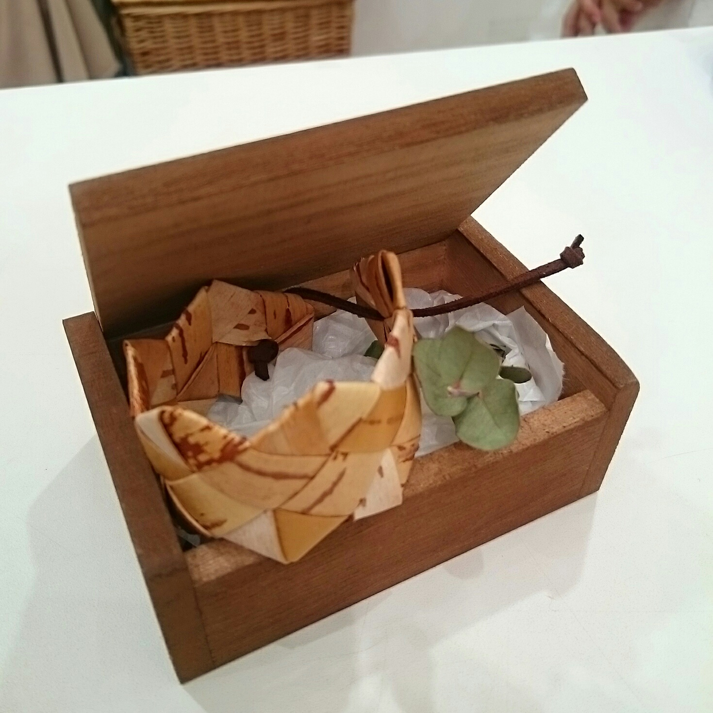 先生の作品の「白樺のストラップ」。