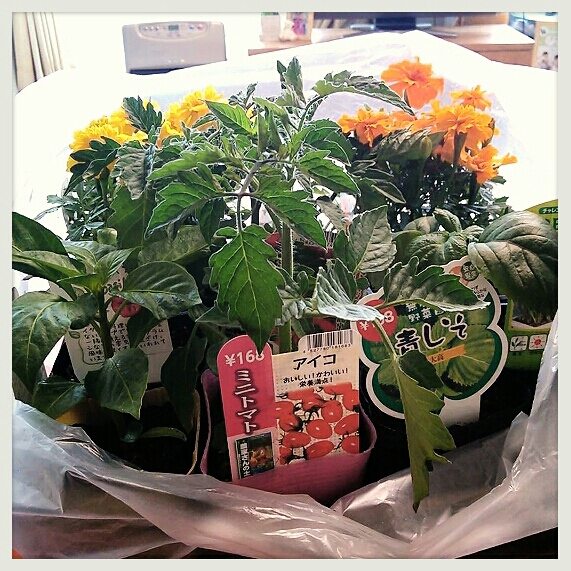 ミニトマト、バジル、パプリカ、シソ、マリーゴールド。