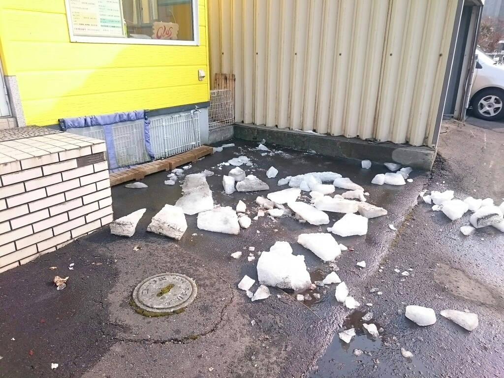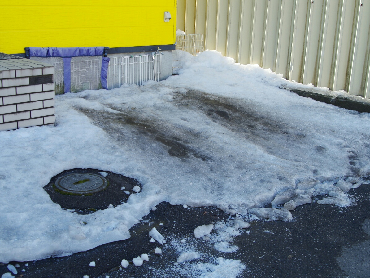 2週間前まで、ガッチガチに凍っていた駐車スペース