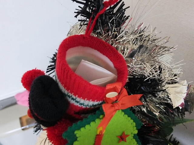 今年はツリーのてっぺんに「くつした」もスタンバイ。