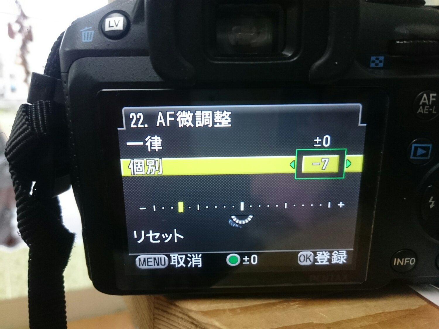 メモリ「-4」くらいのとこにピントが来てる。