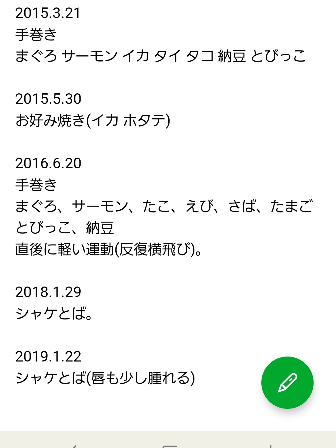 症状が出た直近に食べたものとかをメモっておりました。