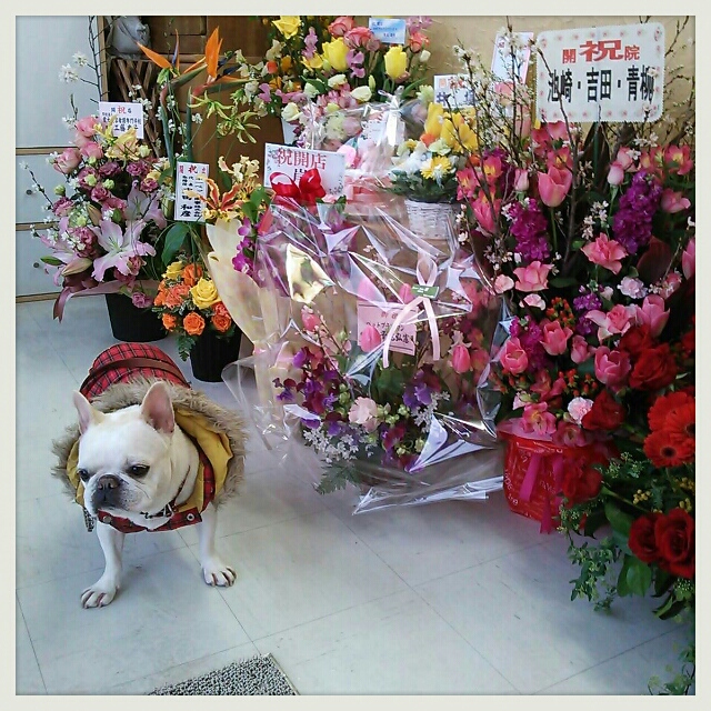 開店祝いのお花まいっぱいでしたっ!!オーナーの人徳ですねっ!