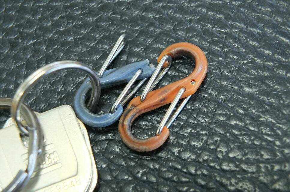…の、ナスカン?部分が壊れて、カギが落ちた…「チャリッ」。
