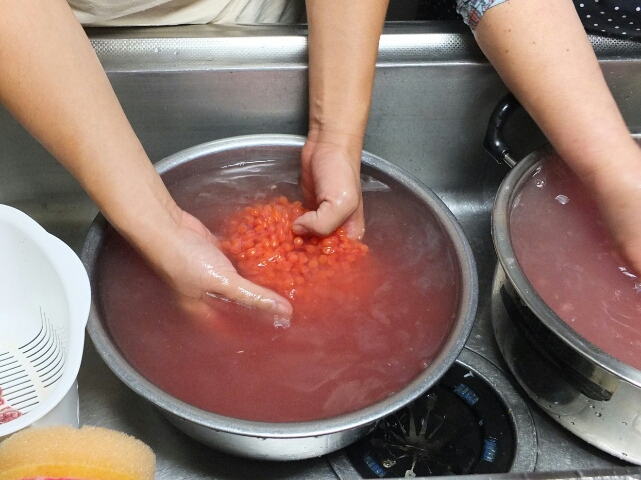 水を切ってから、調味料入れて冷蔵庫で一昼夜。