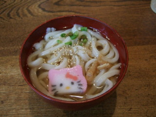 すうどんですが、キティちゃんのかまぼこが入っていたり