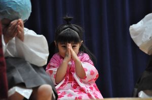 男の子はヅラ付けて、女の子は小夜ちゃんに扮します。