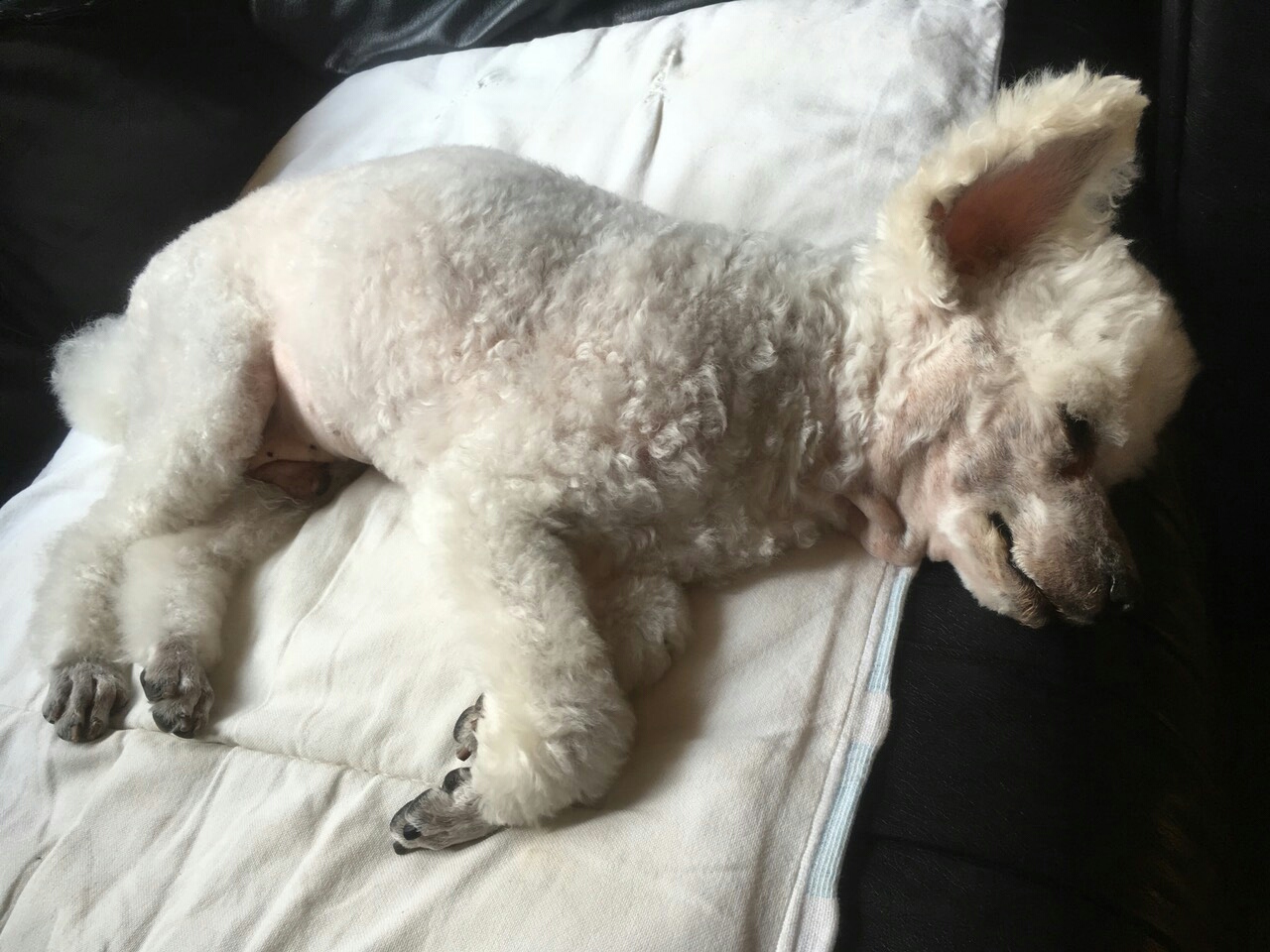 …トリミング後、また眠りにつく「かんち」…