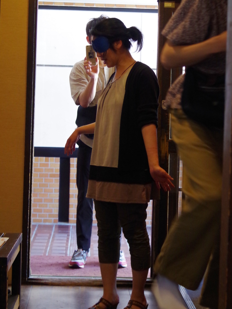 本人にはサプライズ。目隠しで登場!!