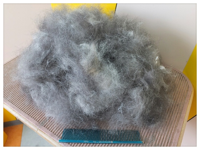 シャンプー前のブラッシングで、ここまで抜けました…。ルーム