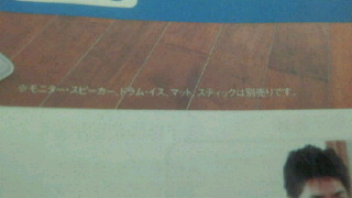 「モニター、スピーカー、ドラム、イス、マット、スティックは別売りです」