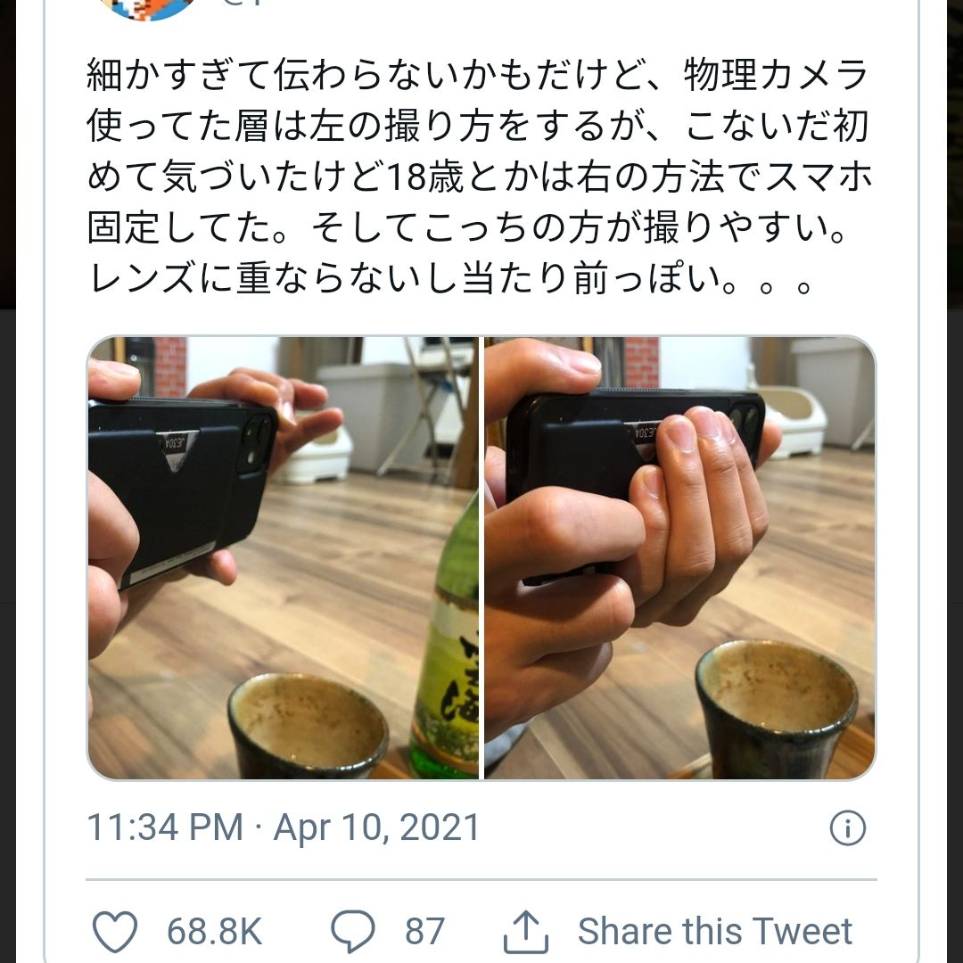スマホカメラのホールドの仕方。
