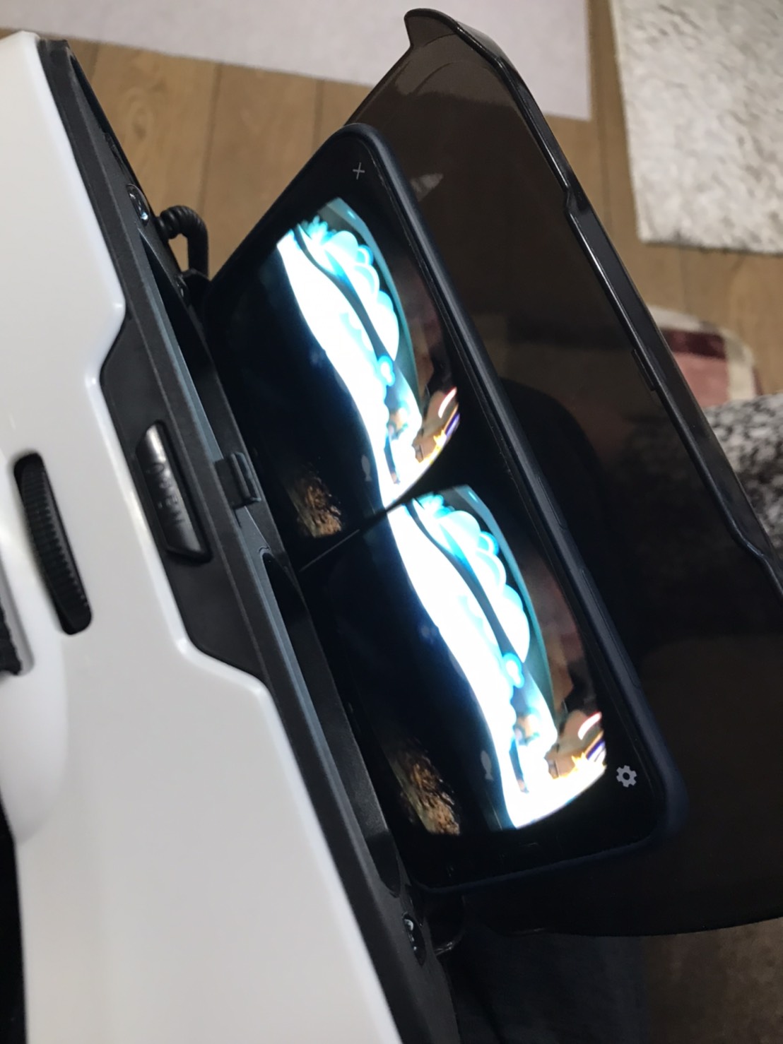 コレにスマホをセットして「VR」アイコンをポチっとな。