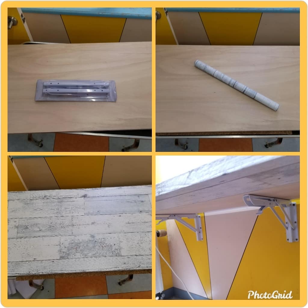 用意したのは「折りたたみ棚受け」「リメイクシート」。