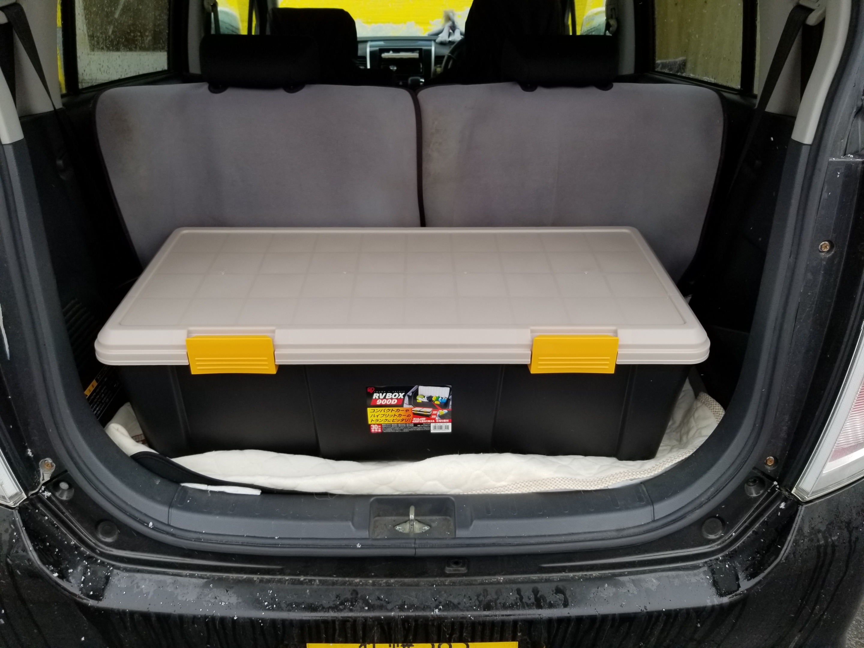 ワゴンRジャストサイズの荷物入れ。