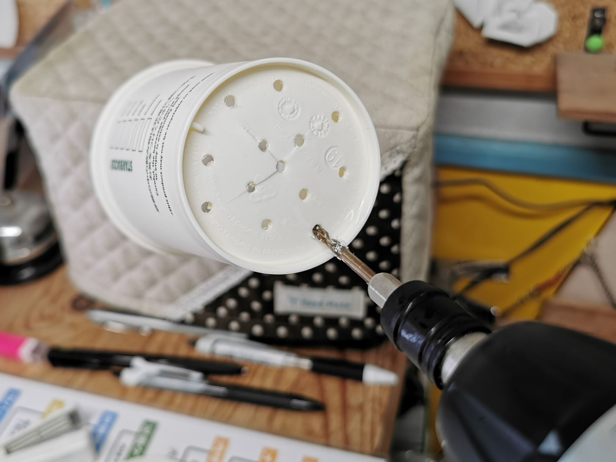 下から穴を開けて、鉢代わりにしてみることに。