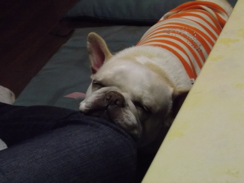 ・・・ちなみに、この子、アゴ乗せないと熟睡できないようで・・・