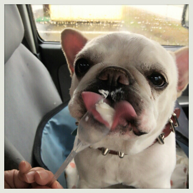 下には練乳。…当然ながら、今日も助手席にはこの人がいます…。
