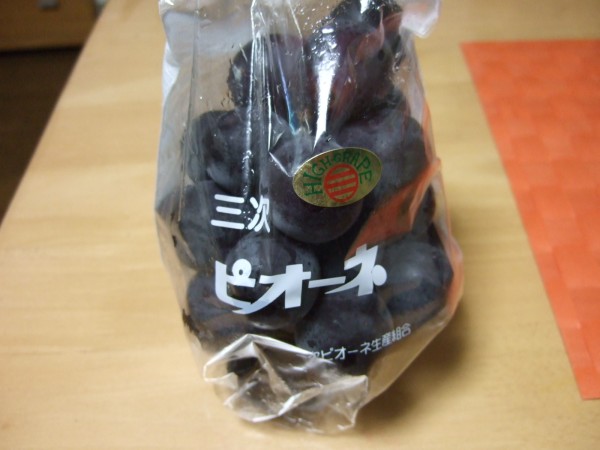 「種なしぶどう」の「ピオーネ」。