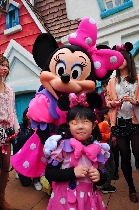 同じ服着たトゥーンタウンのミニーちゃんにも粘って粘って、一緒に写真GET。