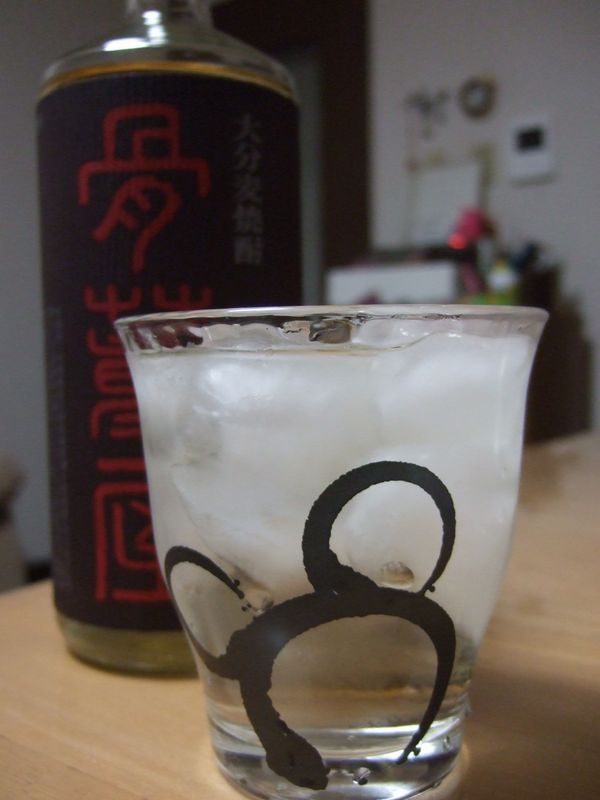 「自分用のお土産で買った「ミッキーのグラス」で「麦」を呑む。