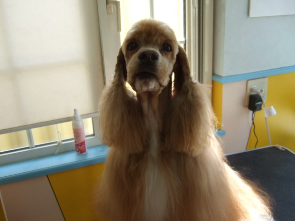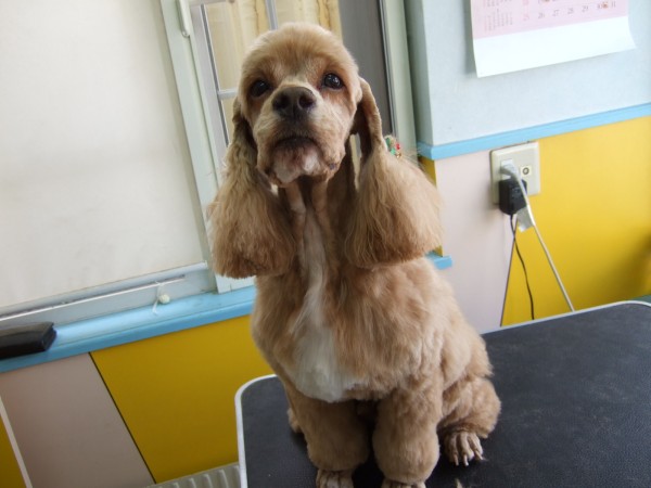 開店当初から来ていただいている常連さんで、フルコートのコッカーくん。