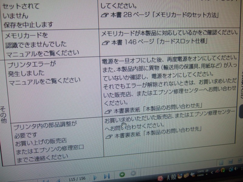 見にくいですが、「電源オンオフでも症状が改善しないときは修理センターへ」・・・