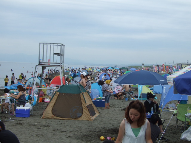 こんな日でも、ぞくぞく現れる海水浴客。