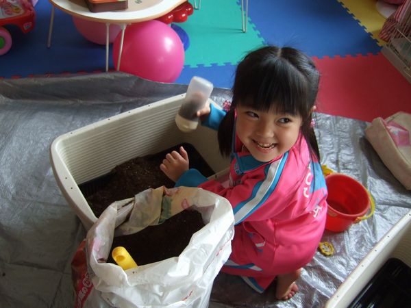 早速、お嬢が帰ってきてから移植作業開始。今年はひと苗ずつにしました。