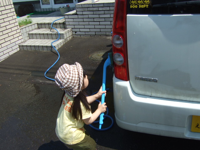 「よしっ!!パパの車洗っちゃえっ!!」