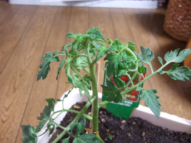 うちのミニトマトちゃん・・なぜか先端の枝がくるんと丸まってきた・・。