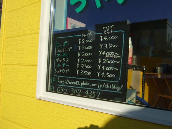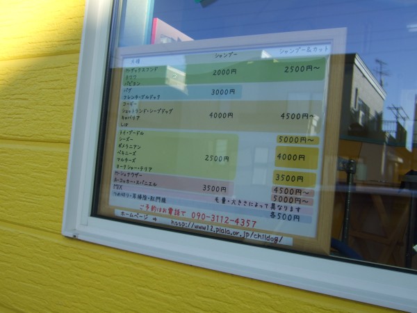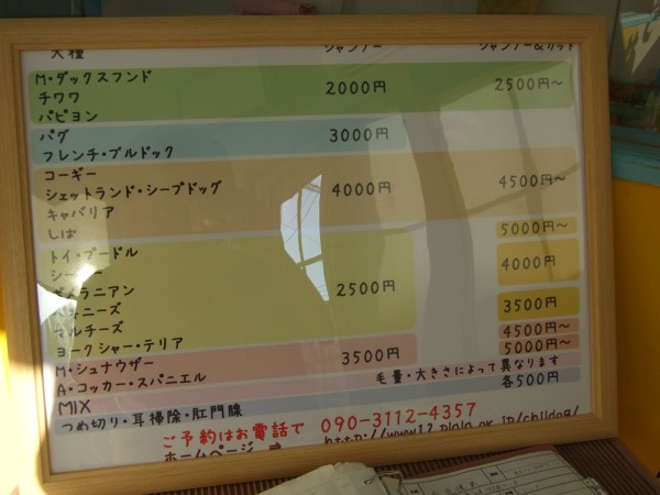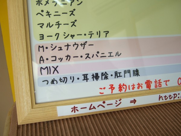 開店以来、トリミング室に鎮座しておりました手書きの「料金表」。