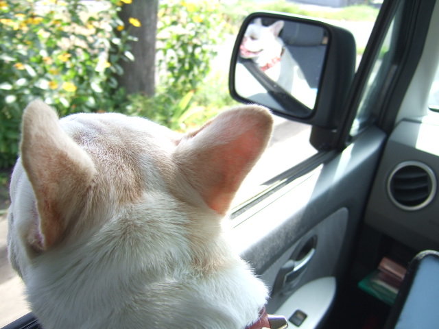 ・・暑いっすね・・。 うちの嬢ちゃんも、すっかりへばり気味。 うちの車はエアコン効き始めるまで時間がかかるので、窓全開です。 信号で止まるたびに、横の運転手に笑われますが・・うちの嬢がなにか??