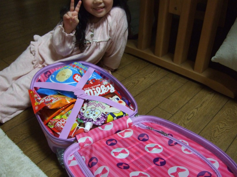 コレだけではつまらないので、中にお菓子をたくさん詰めて・・・。