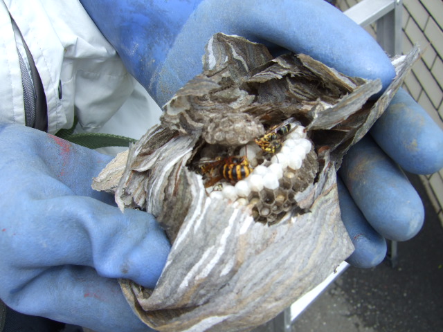 ・・おやっさん・・まだちょいと動いてるのもいる巣をくるまのごみ箱にポイっ・・。