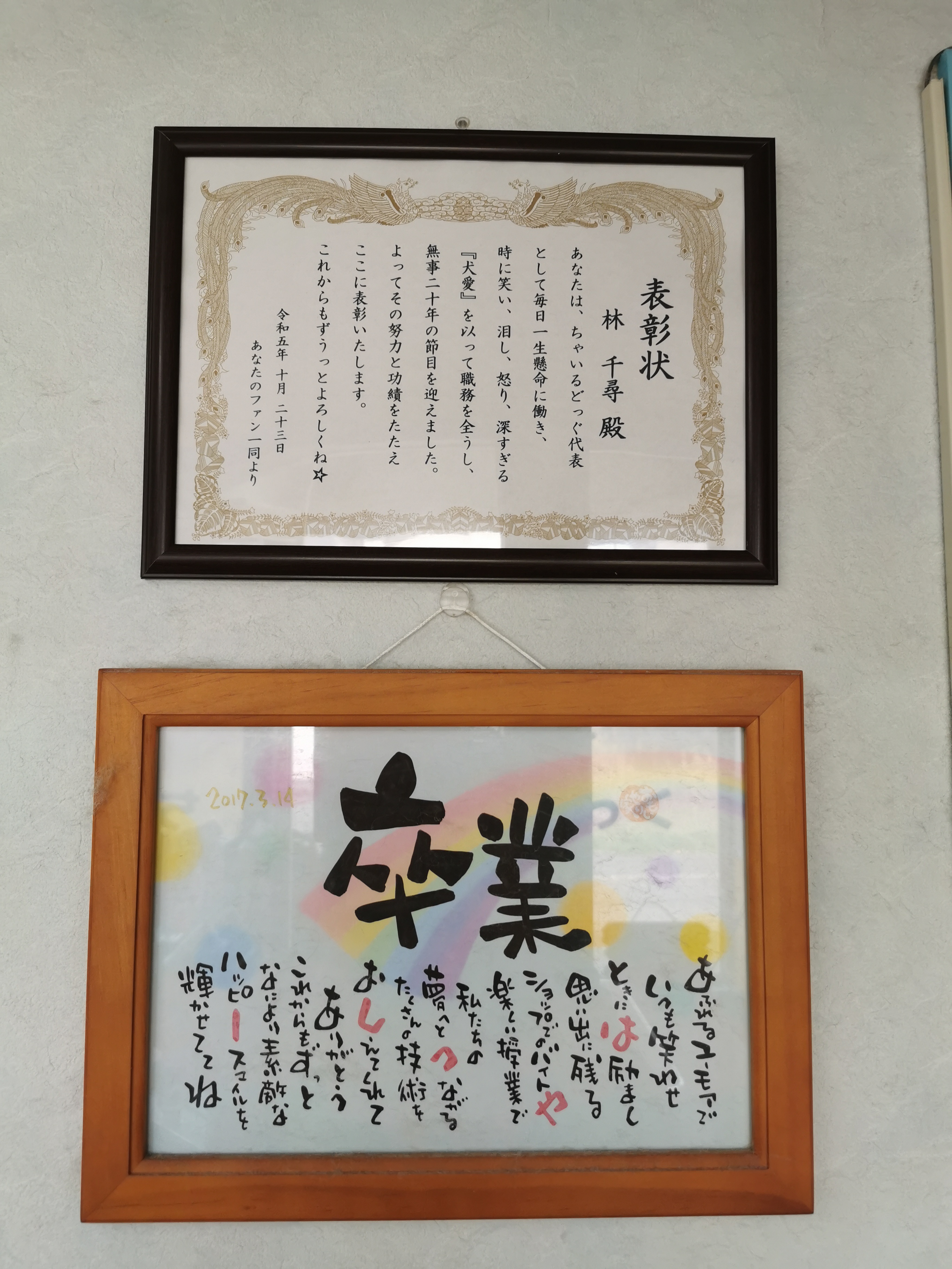 「表彰状」いただきました!!