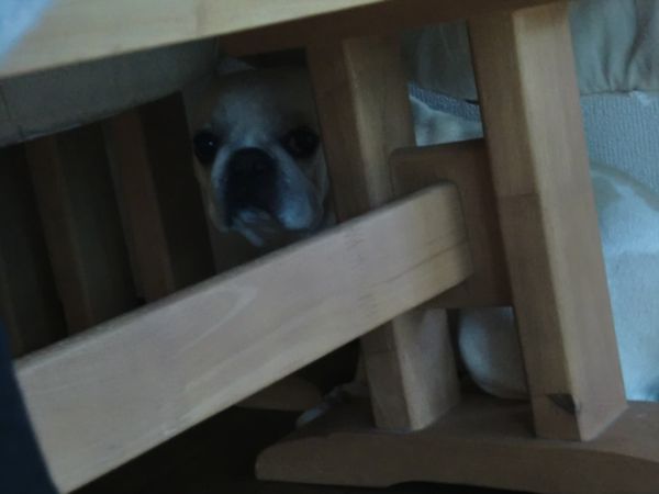 必死でテーブルの下に隠れておりました。