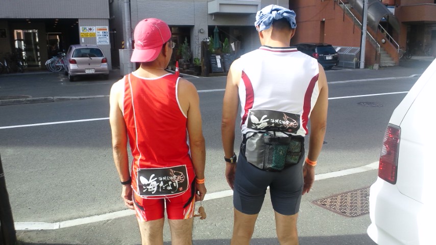 還暦仕様のまっかのユニフォームで走るのは、ご存じ、おとん。
