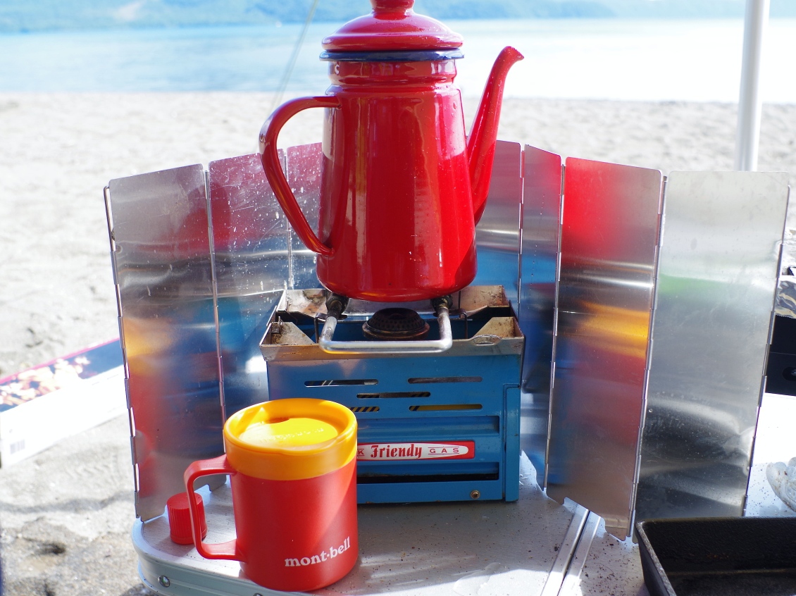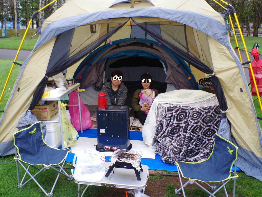 まだまだ朝晩は冷えるので、ストーブ持ち込みました。