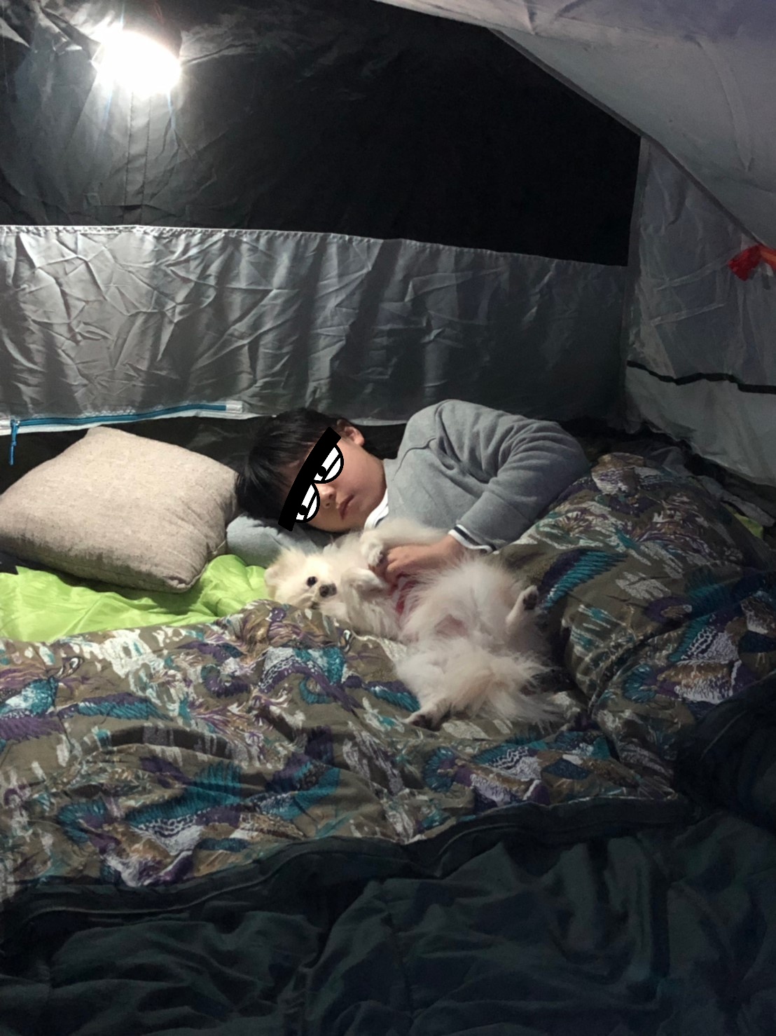 うたもテントでぬくぬくゴロゴロ。