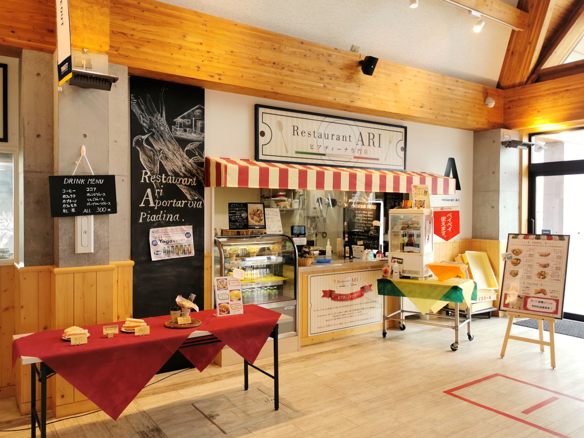こちら、野菜の直売所とテイクアウトのお店が数店あり