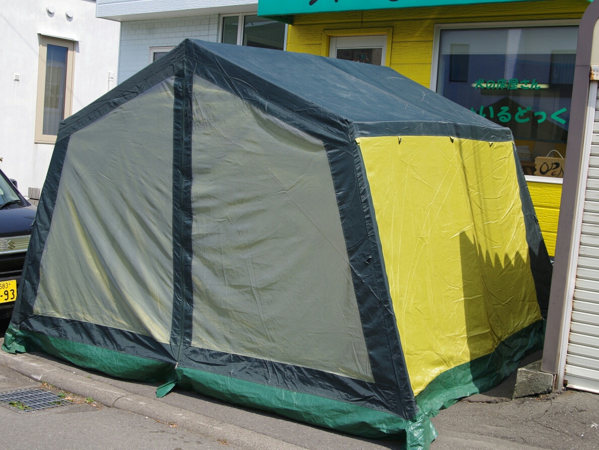 骨組み組んで、そこに幕を掛けるという昔ながらのモノ。