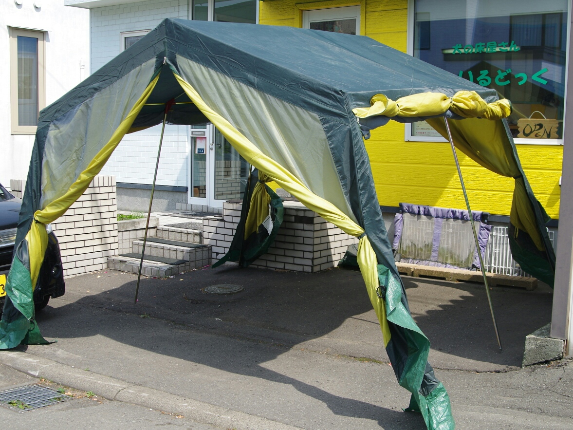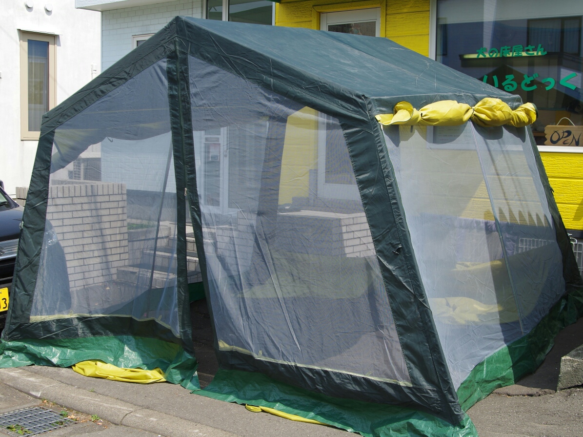 (一人の時は足を全部立てずに幕を掛けますよー)