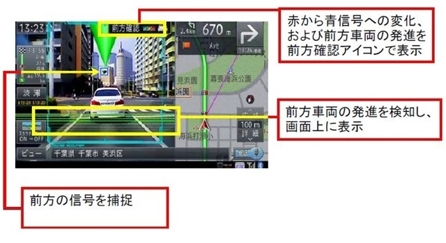 フロントガラスに取り付けたカメラで写した映像を解析し