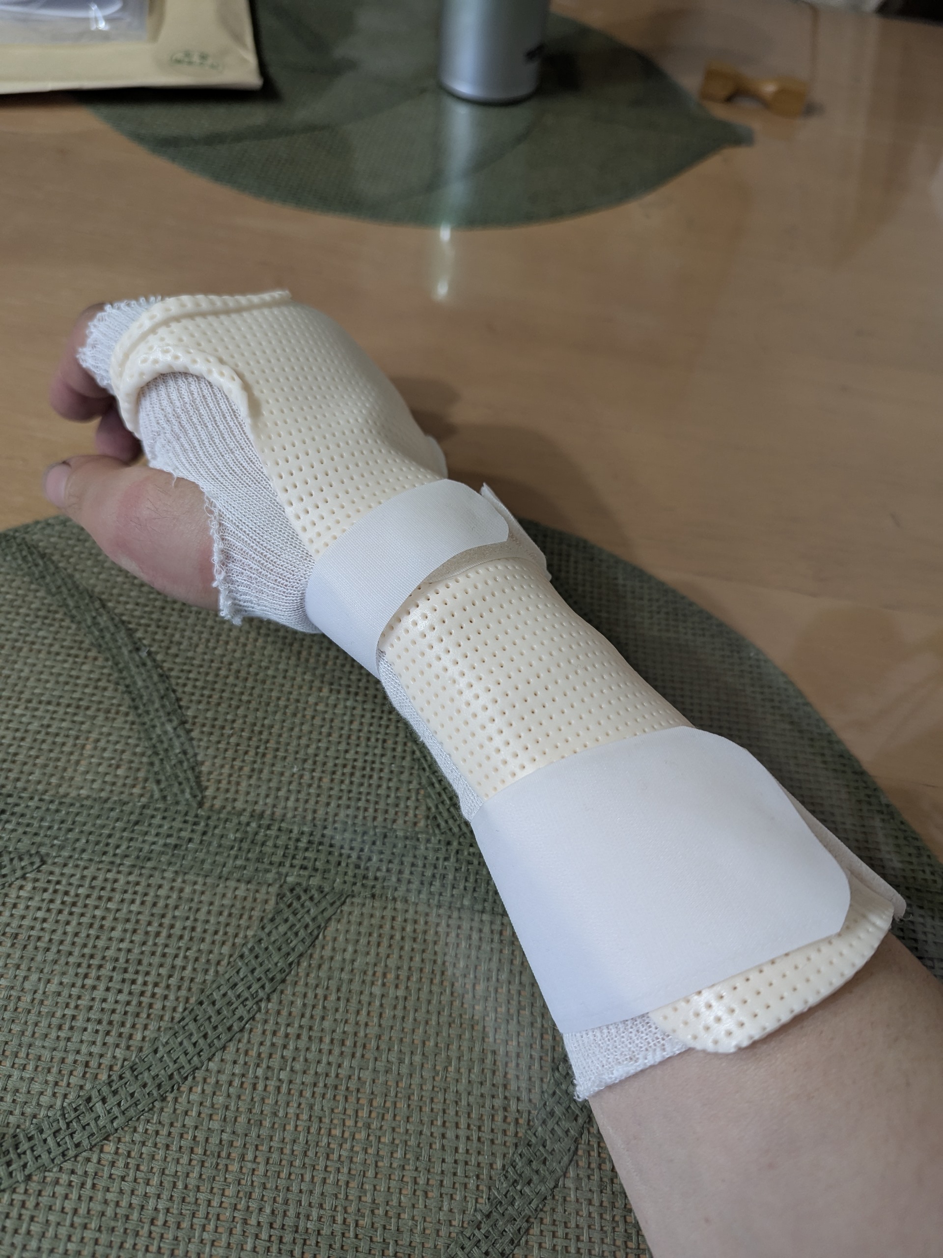 「小指付け根の骨折」は装具にて固定の上、経過観察。